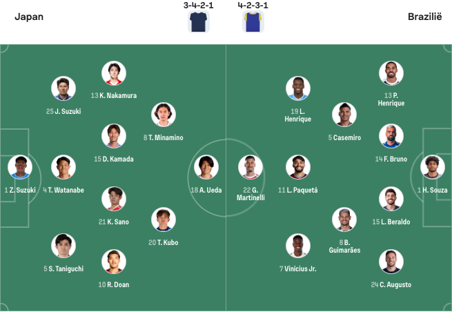 Definitieve opstellingen Japan – Brazilië